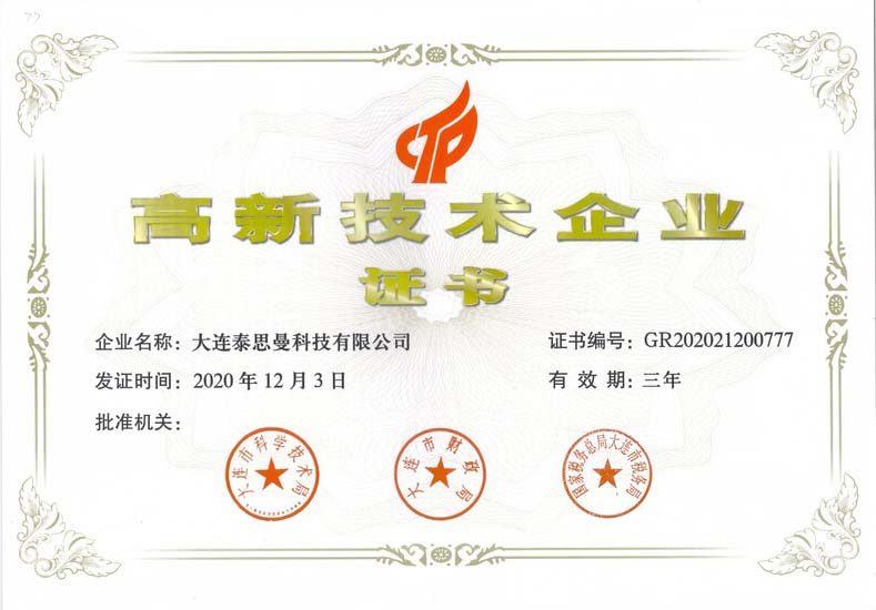 大连中国·8827太阳集团荣获大连市高新技术企业认证